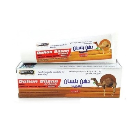 دهان بلسان العجيب (أو دهان الجمل) هو مزيج علاجي طبيعي يُستخدم لتسكين آلام المفاصل والعضلات وتشنجاتها، ويُفيد في حالات الروماتيزم والظهر والرقبة، ويحتوي على مكونات مثل زيت الجمل، والكافور، والزيوت الأخرى (مثل زيت الزيتون، الكرفس، النعناع، القرفة) التي تعمل على تلطيف المنطقة المصابة، وتحسين الدورة الدموية، وترطيب البشرة، وتخفيف الالتهابات، مع نتائج سريعة بعد التدليك الموضعي، ويمكن استخدامه للصداع والبرد أيضاً.